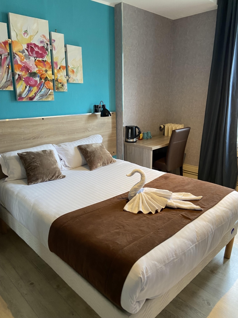 Votre chambre est équipée de tout le nécessaire pour vous satisfaire : wifi gratuit, TV écran plat, plateau d’accueil (thé & café à discrétion) , salle d’eau privative, sèche-cheveux, … Le tout rénové par nos soins dans un cadre chaleureux.